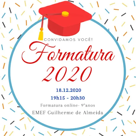 📲 O link para a sala do Meet da Formatura será disponibilizado uma hora antes do evento no Mural do Google Sala de Aula e no WhatsApp Institucional da escola.