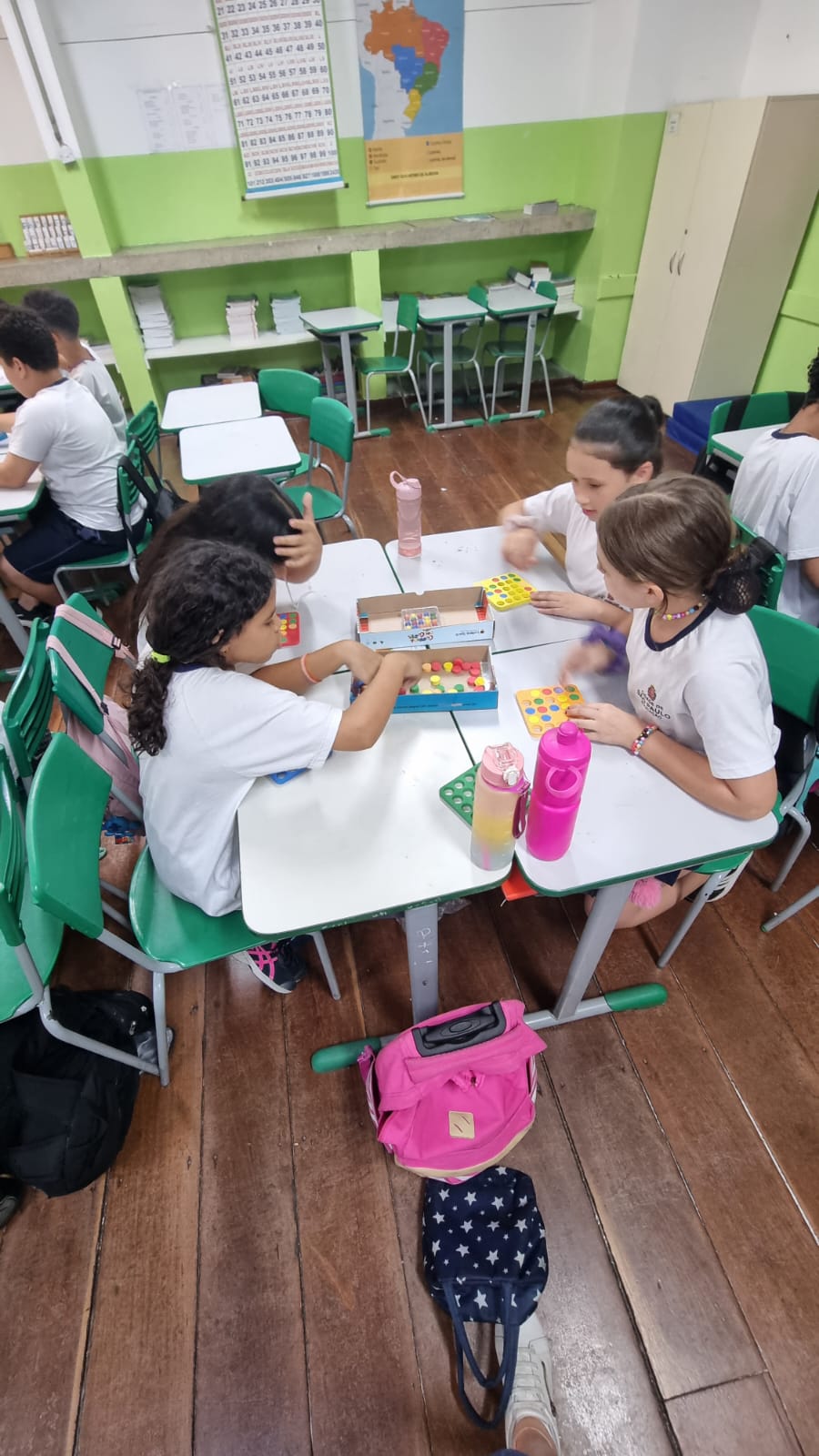 Aula de matemática diferenciada com os alunos do 5º ano B, com a utilização de jogos.